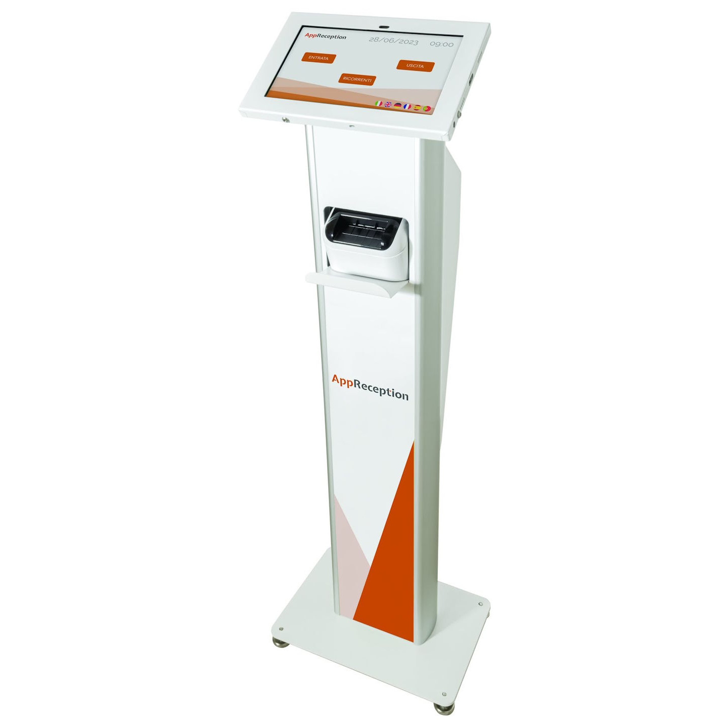 Soluzione completa composta da una postazione da pavimento con schermo da 11 pollici, dotata di WiFi, Bluetooth e fotocamera frontale. Il dispositivo viene fornito con AppReception preinstallata in modalità chiosco e una tastiera semplificata personalizzata.